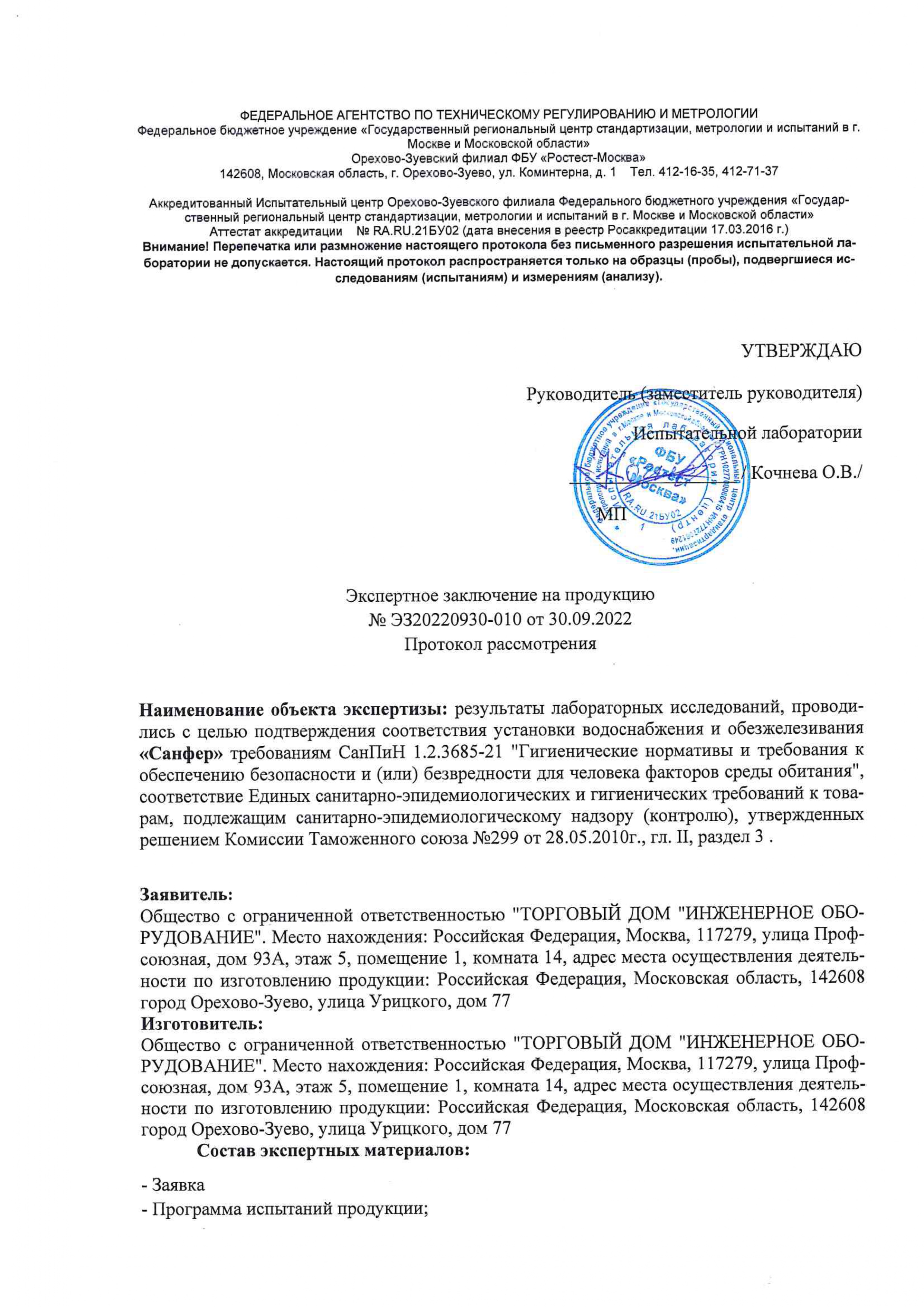 В станциях ТВЕРЬ к расходным материалам относятся ерши, реагенты под нужды заказчика.