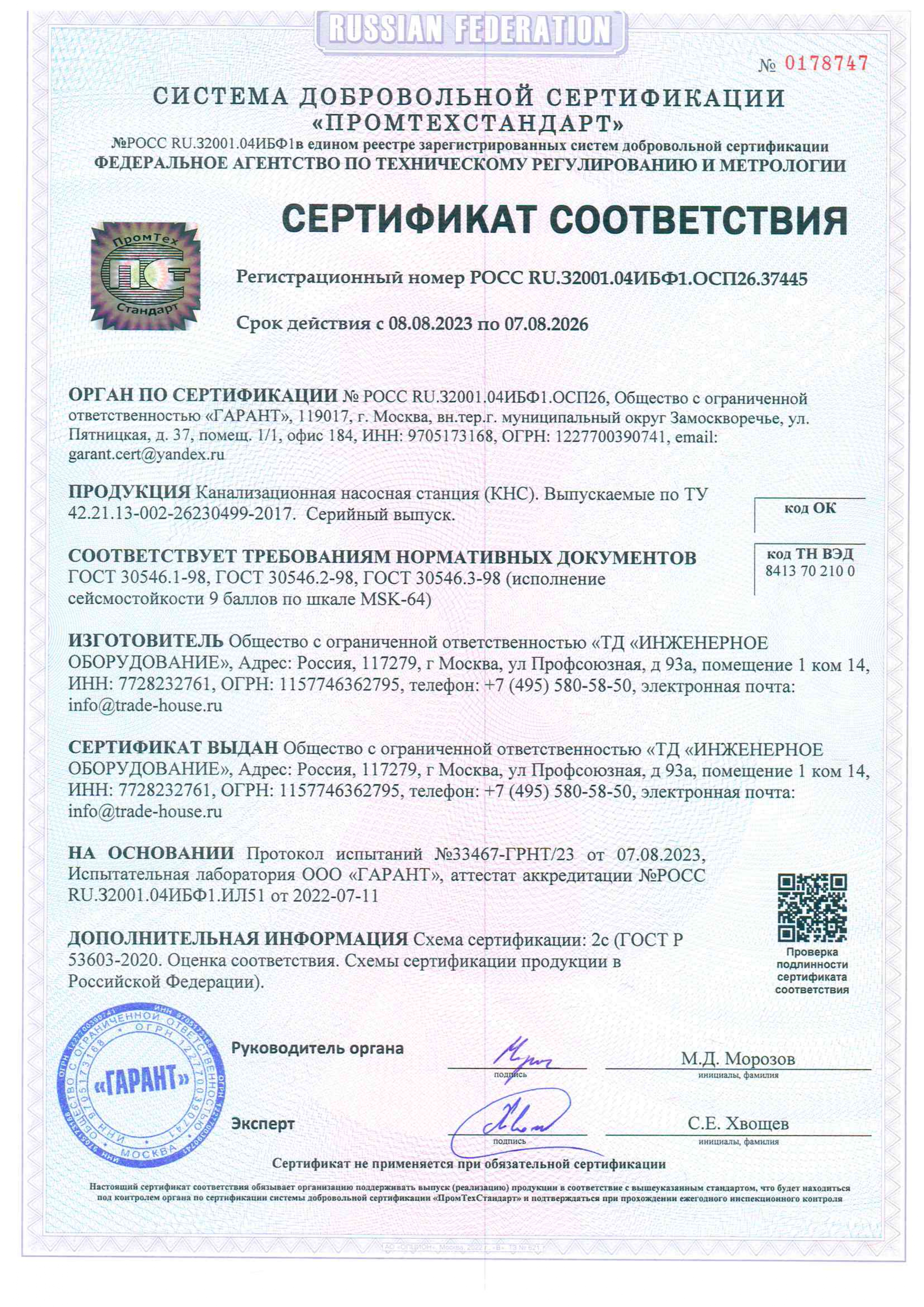 На оборудование, изготовленное ООО «ТД «ИНЖЕНЕРНОЕ ОБОРУДОВАНИЕ», гарантия 1 год. Гарантийные обязательства на оборудование, поставляемое в составе очистных сооружений, согласно паспортам заводов изготовителей. Иногда возможно увеличение гарантийного срока в зависимости от технического задания.