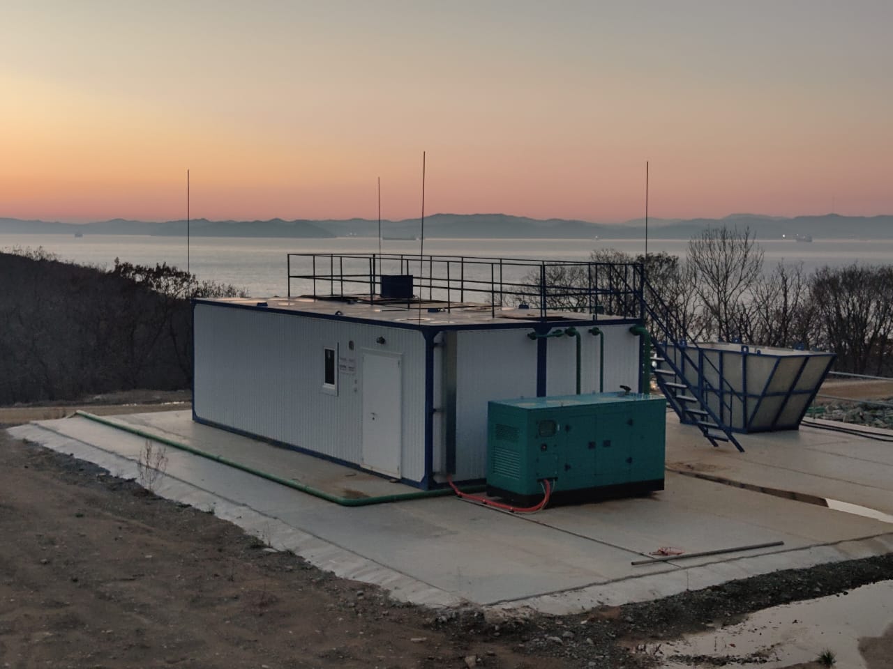 Строительство горно-обогатительного комбината для добычи золота в Усть-Камчатском районе. Очистные сооружения хозяйственно-бытовых сточных вод "ТВЕРЬ-50БМ" производительностью 50 м3/сутки. Суровые климатические условия, сейсмика 9 баллов.