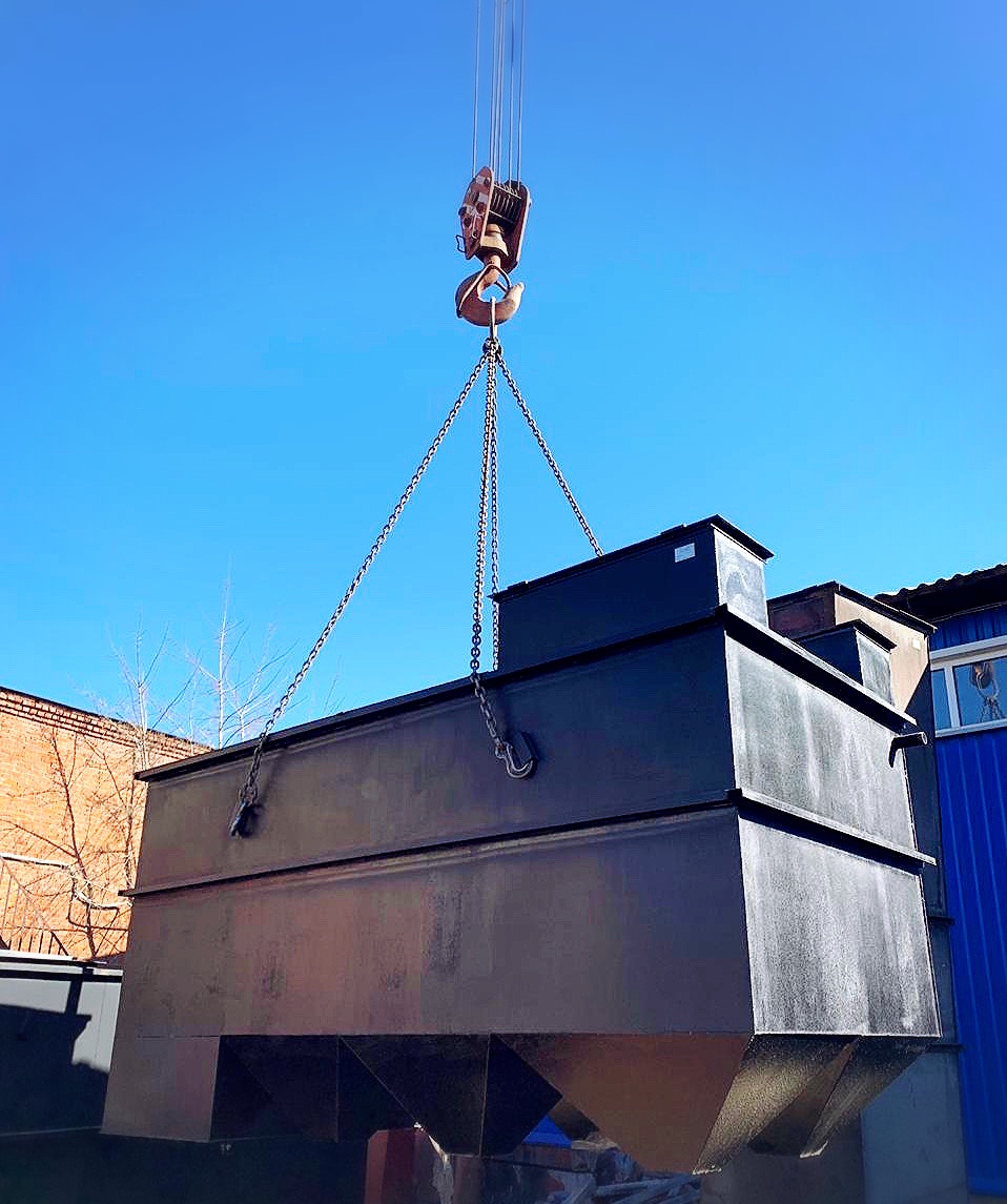 Установка изготавливается из легированной листовой стали толщиной 4 мм, защищенной антикоррозийным покрытием из материалов, специально предназначенных для изоляции конструкций очистных сооружений. Для доступа в отсек очистного сооружения предусмотрен технический колодец.